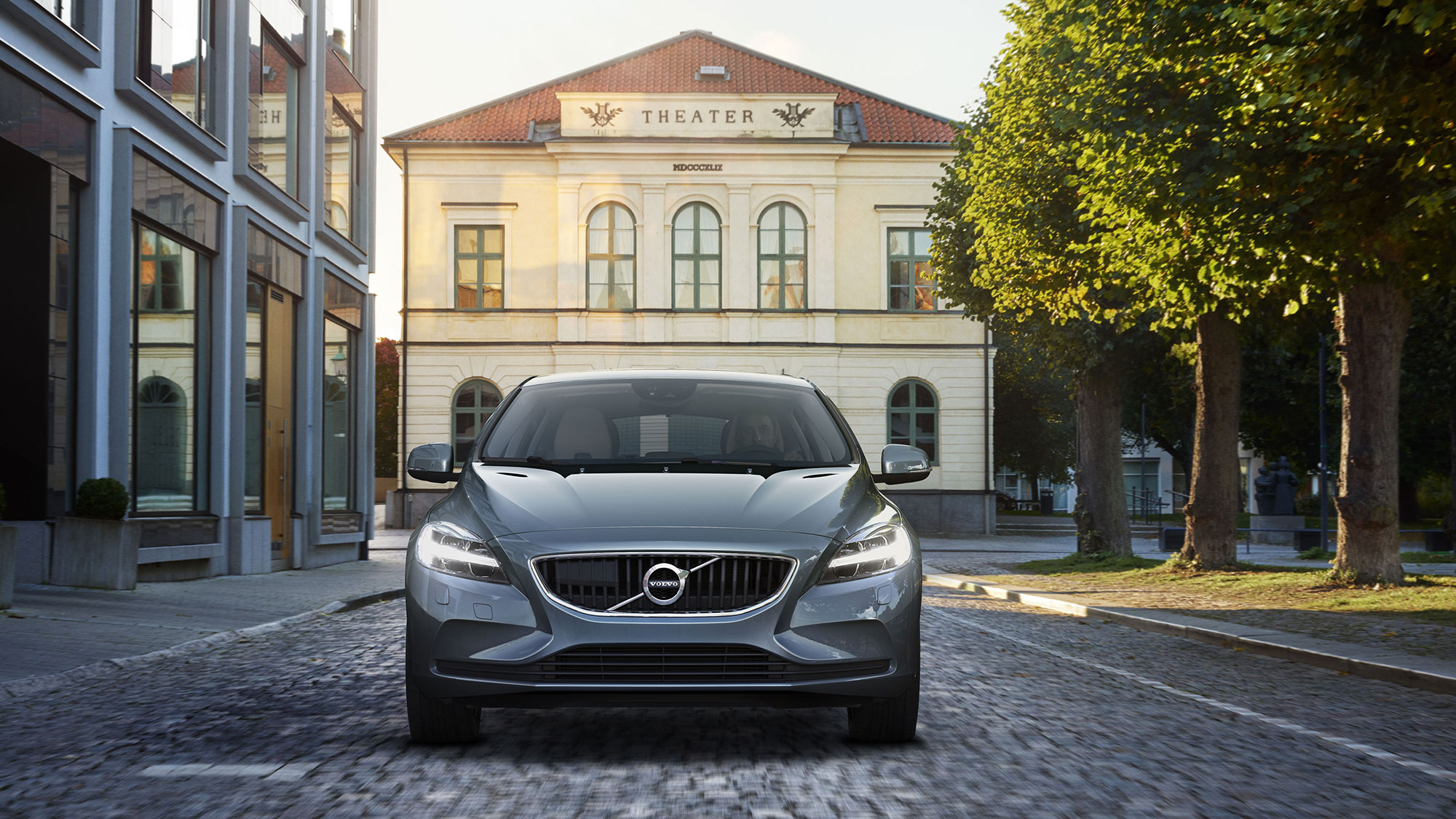 Den nye V40 med sine unikke T-formede frontlys giver bilen en bredere og mere atletisk holdning.